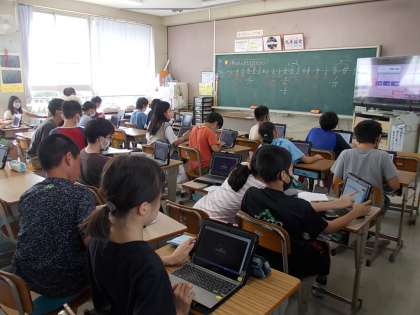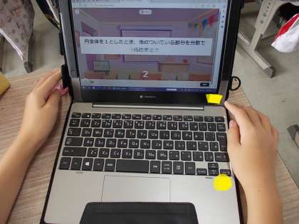 分数の学習のあと、「Kahoot」というアプリを使って分数の計算問題に挑戦していました。