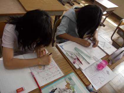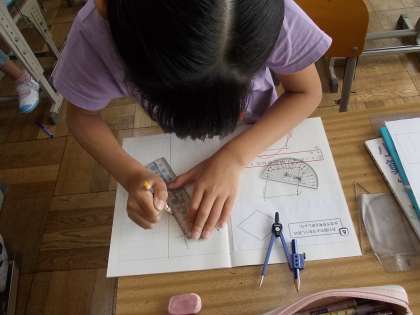 今日はばっちりテストをした後、いろいろな四角形の作図に挑戦していました。