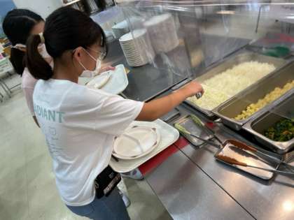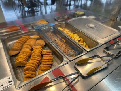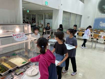 夕食の時間です。ビュッフェ形式で各自で、おかずを取っていきます。