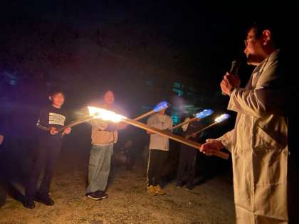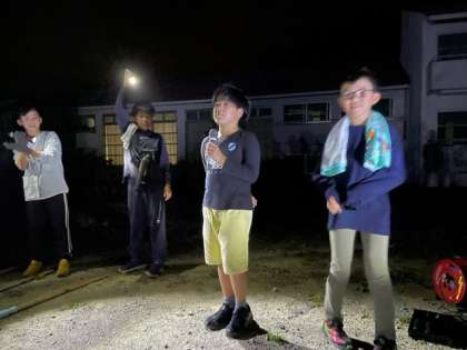 キャンプファイヤーの様子です。各クラスのスタンツや実行委員会からの出し物はどれも素晴らしい内容で大変盛り上がっています。