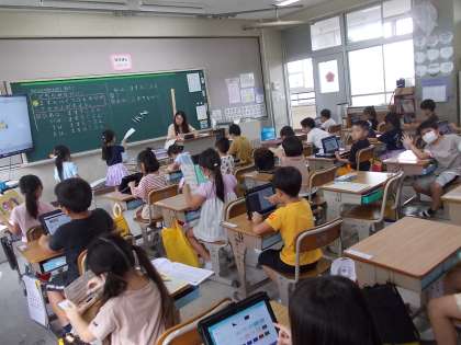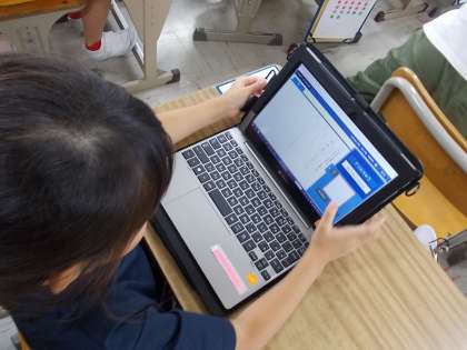 そのあと計算ドリルの問題に挑戦しています。終わった子から、タブレットに取りかかります。