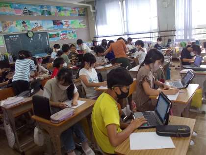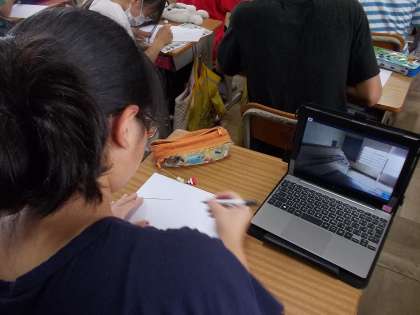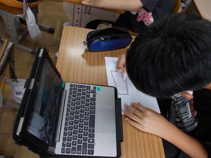 はとぶえコンクールの絵画「学校」に取り組んでいます。