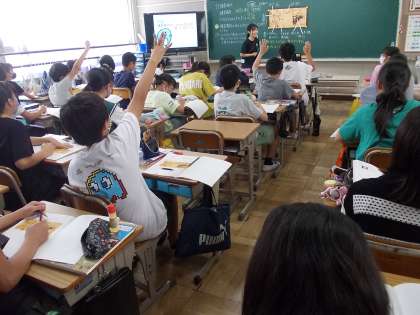 今日は公開授業なのでたくさんの先生が授業参観をしています。