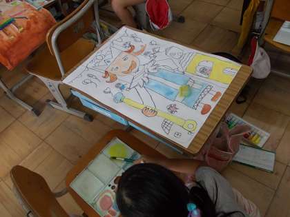 今日は「はだかの王様」の絵に取り組んでいます。