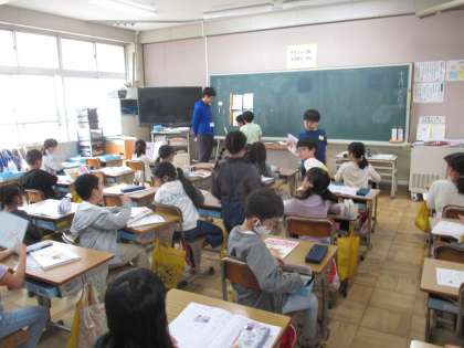 上は3組の国語で、「どうぶつ園のじゅうい」のテストの様子です。