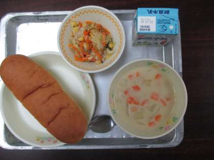 コッペパン 牛乳 クリームシチュー ホットサラダ
