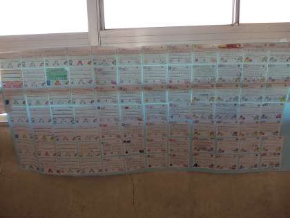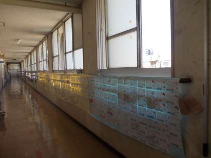 6年生の教室の前に1年生から5年生までが書いてくれた連合運動会への応援メッセージは掲示されていました。