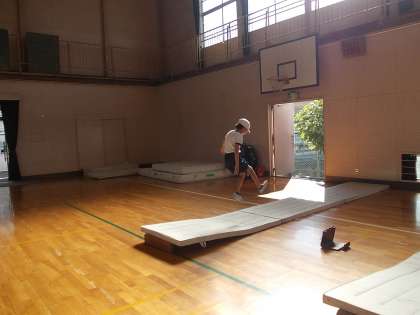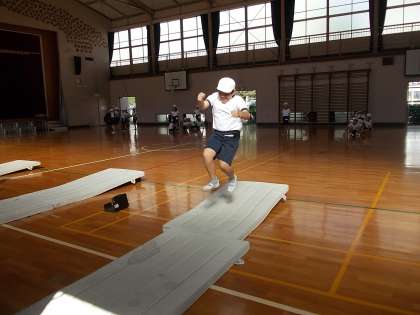タブレットで自分の跳ぶ姿勢を録画して、確認をしています。