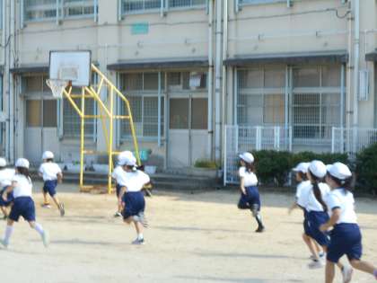 運動場を走って周回しています。もうすぐ「かけ足チャレンジ」がはじまります。寒い冬に向けて体力アップをめざしましょう。