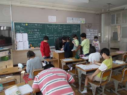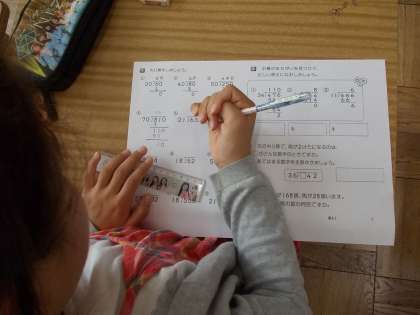 今日のめては、「ミスしやすい問題を見つけ、クリアできるようになろう」です。プリントの計算が出来たら先生に見てもらいます。
