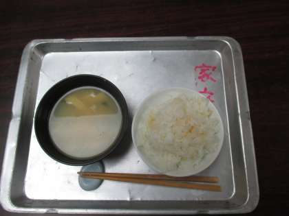 教頭先生と一緒にいただきました。とてもふっくらと御飯が炊き上がっていました。お味噌汁もとても良い味加減でした。ごちそうさまでした。