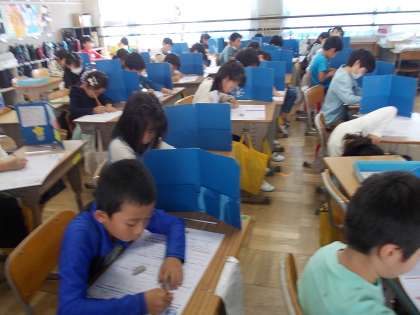 今日は、「はんで意見をまとめよう」のテストをしていました。