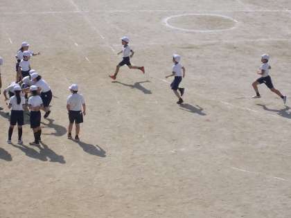 大縄跳びの練習とティーバッティングに取り組んでいます。