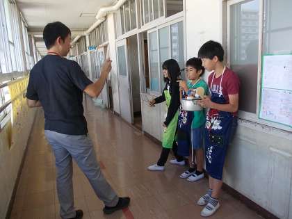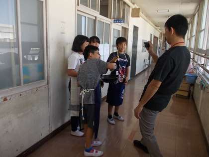 また、完成したエプロンを身につけ、グループで記念写真を撮影していました。
