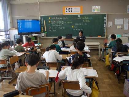 4組の算数、少人数授業、教室のようすです。
