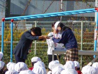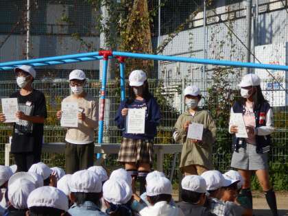 6年生一人ひとりに記録証を頂き、さらに記録が良かった児童には賞状が渡されました。