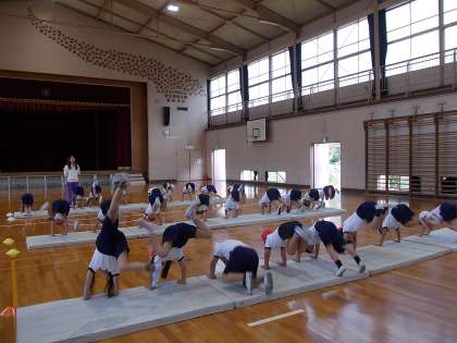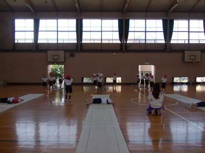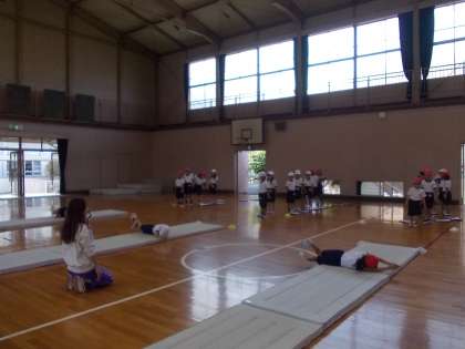 「まるたころがり」「かえるあしとび」の練習をしています。