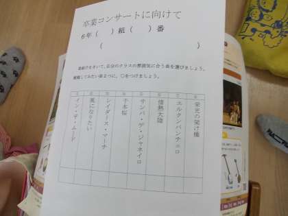 自分のクラスの雰囲気に合う曲はどれかを考えます。