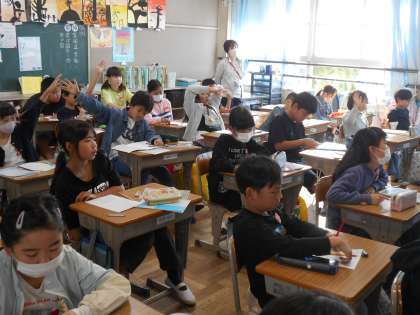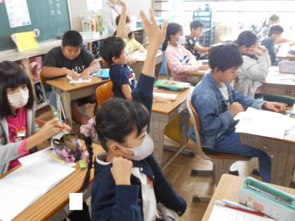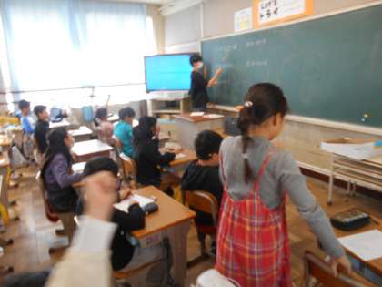 「式と計算」の学習です。かけ算は、たし算、ひき算よりも先に計算するきまりを使ってうまく式を立てています。