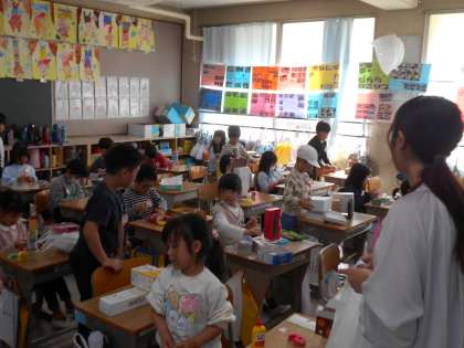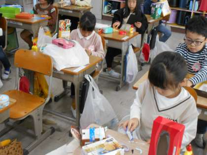 箱やつつを使って工作にチャレンジです。作りたいものが仕上がってきているようです。