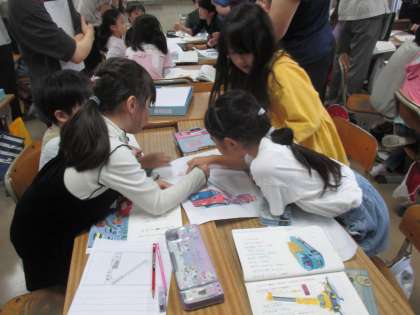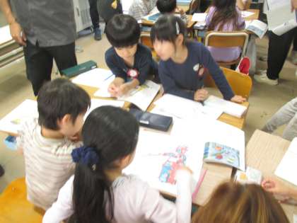 多くの先生方が見に来られたため、最初、子どもたちは緊張していましたが、グループでたくさん意見を出し合っていました。