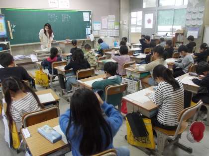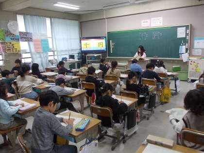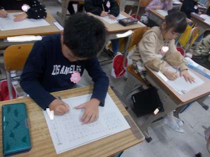 漢字「円」「千」の学習のあと、「かたかなひょう」のプリントに取り組んでいます。