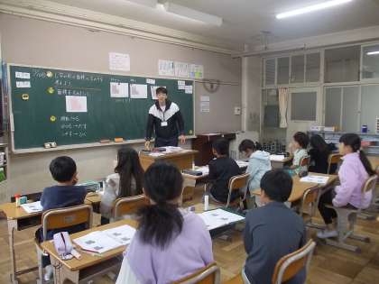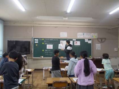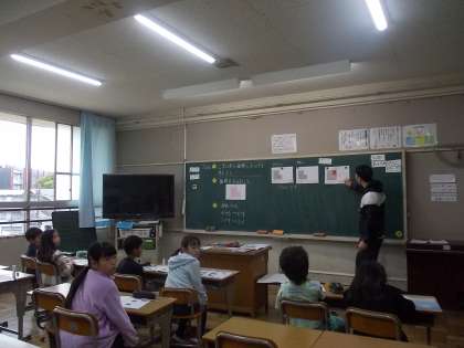 今日のめあては「L字の形の面積の求め方を考えよう」です。