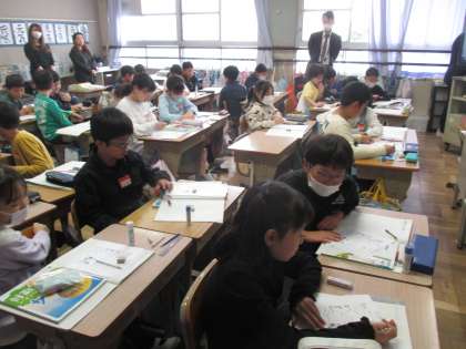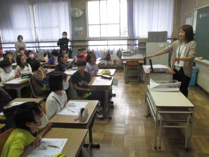 4年4組と3組は理科で、「みんなで使う理科室」の授業です。理科室の使い方について確認しました。