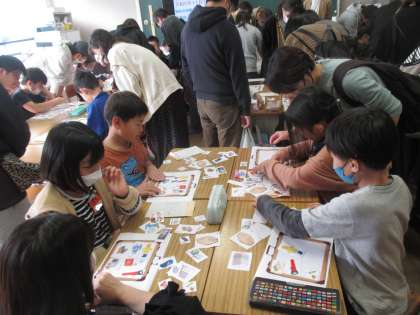 1組は総合で、「防災」の学習です。「11月12日(日)10時15分(天候:雨、気温・10度)」に、もし地震が発生して避難所に避難することになったら、スーツケースにどんな物を入れるか、保護者の方と一緒に考えました。