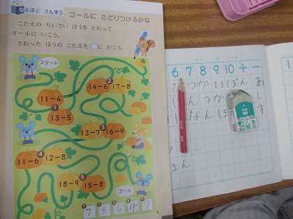 算数「ひき算」の学習です。今日は、「11−2のもんだいをつくろう」に取り組んでいました。