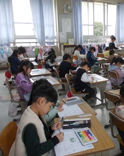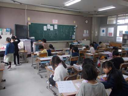3組の3時間目のようすです。国語「かきかた」の時間です。