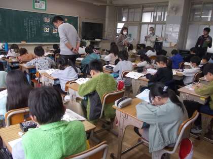 今日は、公開授業です。たくさんの先生が参観に来ています。