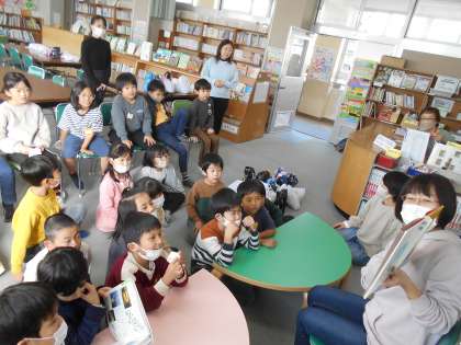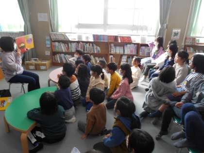 今日もおはママの方々が来て下さり、絵本を読んでくださっています。2年生の子たちが楽しい時間を過ごしています。終わりの時間がくると「えーっ、もう1冊読んでほしいー」と言っていました。