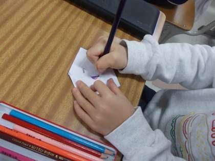 作ったたけのこさんに、6年生にプレゼントをするお手紙を書いていました。