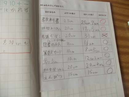 今日は、「いろいろなものを30cmものさしではかろう」に取り組んでいました。