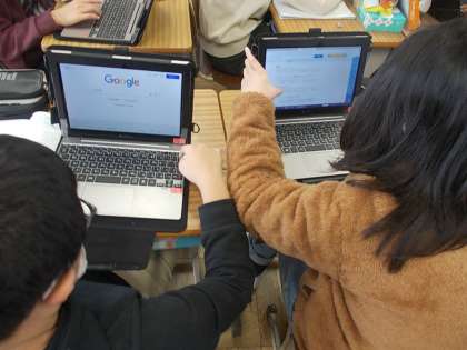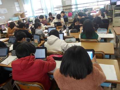 タブレットを使って「冬に関係のある詩」を集めていました。