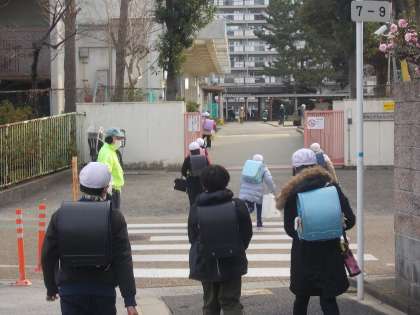 今日は、風は冷たいですが、昨日より、少し寒さが和らいでいるような朝です。元気よく登校しています。