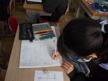 支点、力点、作用点等の言葉を確認しています。そのあと実験をします。