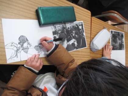 今日は、「はとぶえ」の絵画に取り組んでいます。