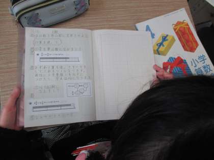 今日は「計算を使って、仮分数を帯分数に変身させよう」に取り組んでいます。