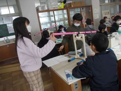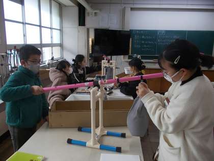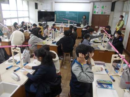今日は理科室で、実験をします。