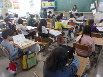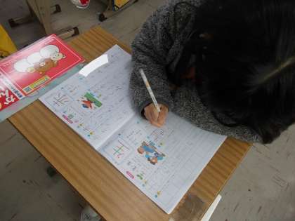 新出漢字「赤」「生」を学習した後、漢字の学習ノートに練習していました。