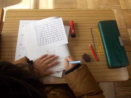 今日は、「分数」、同じ大きさの分数を見つける問題に挑戦していました。