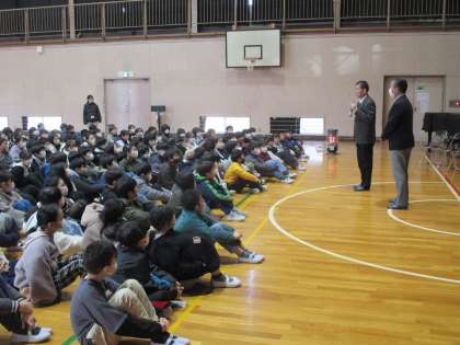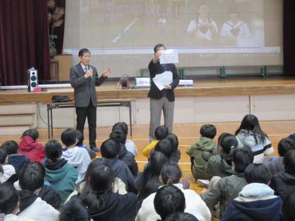 6年生は3時間目に非行防止教室を行いました。北堺警察署の方を講師としてお招きし、万引きや自転車盗等の窃盗についてお話していただきました。