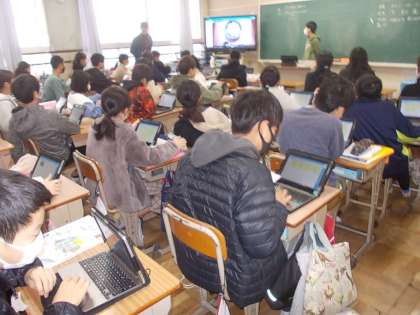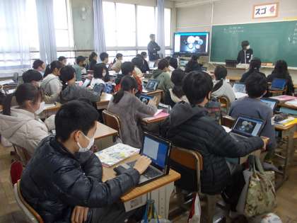 4組の家庭科「冬を明るく 暖かく」の学習をしています。