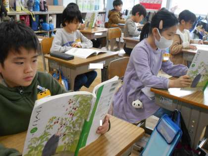 教材「おにごっこ」の先生の範読を聞いています。