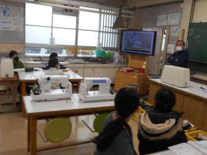 家庭科でミシンについての学習が始まりました。動画を視聴しながら使い方を確認しています。