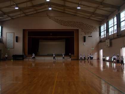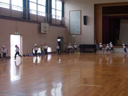 体育館で「5分間走」取り組んでいます。