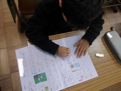 1組のの国語の時間です。