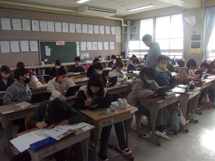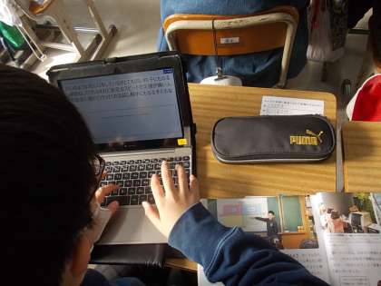 今日は、タブレットを使って「情報社会での情報活用方法についてまとめよう」に取り組んでいました。